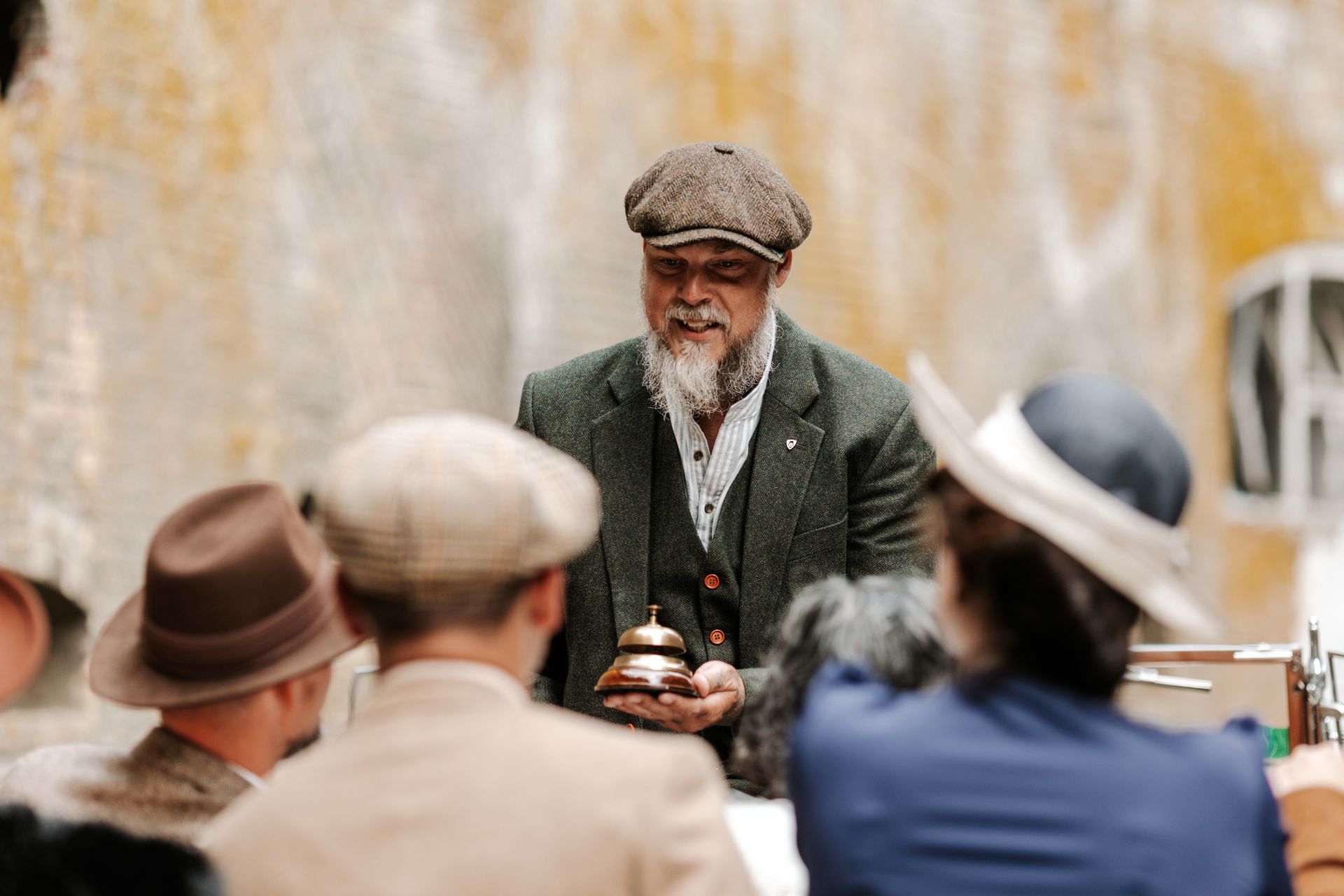 Als alles is afgestemd met de ceremoniemeester en de locatiemanager, ga ik me ook omkleden. Ik draag een geweldig maatpak in Peaky Blinders stijl. Ik heb deze in meerdere kleuren en zal met jullie afstemmen wat het beste bij jullie setting past.